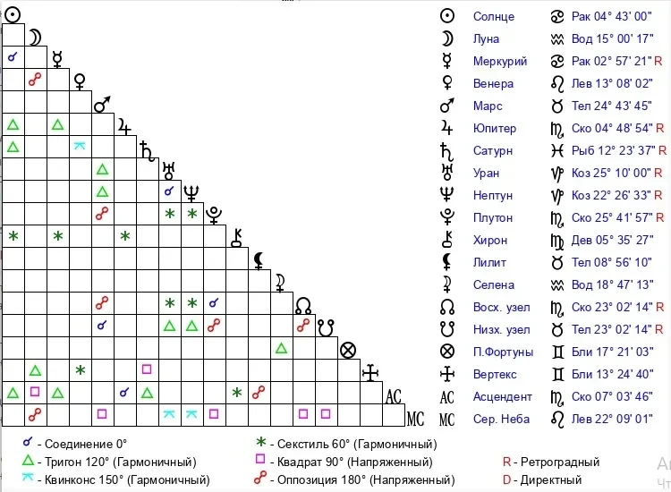 Ещё мне бы было интересно посмотреть на расшифровку моей натальной карты не в машинной обработке. Может быть кто-то сможет и захочет, например, сделать моё описание или описать и предсказать какие-то события. Пожалуй, оставлю это здесь навсегда.